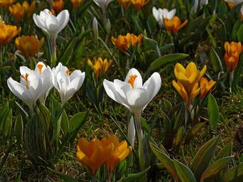 Keywords: crocus white orange spring flower blossom bloom yellow flower meadow sunshine signs of spring