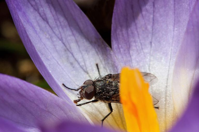 Keywords: crocus wildform fly nectar proboscis food intake schwertliliengewaechs spring crocus flowers blossom bloom flower flora bloom nature violet yellow spring lenz macro
