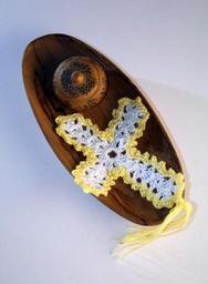 Keywords: cross bookmark crochet handwork white yellow wood