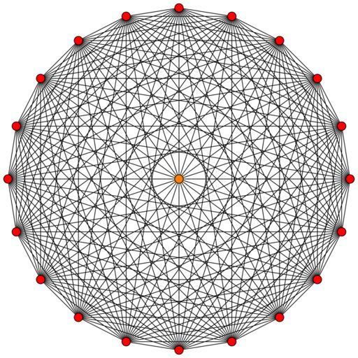 Keywords: Cross graph 10b.svg 10-Orthoplex graph central orange vertex is doubled Vector equivalent of File Cross_graph_10b png Self-made converted from the following vector PostScript source code <pre> 306 396 translate/A 18 mul dup cos 280 mul exch sin 280 mul def gsave 20 1 1 9 A moveto 0 A lineto stroke for 0 0 moveto 0 A lineto stroke 18 rotate repeat grestore 0 1 19 A 7 0 360 arc closepath gsave 1 0 0 setrgbcolor fill grestore stroke for 0 0 7 0 360 arc closepath gsave 1 5 0 setrgbcolor fill grestore stroke showpage EOF</pre> 2011 AnonMoos Cross-polytope graphs Images with PostScript source code |