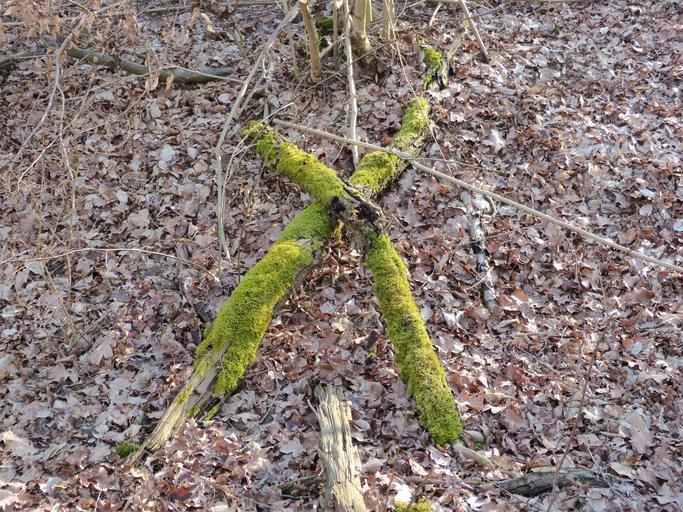 Keywords: cross tree trunks bemoost forest nature green mystical