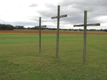 Keywords: crosses jesus church three rome georgia wooden crosses sky field