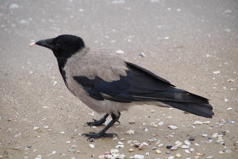 Keywords: crow grey crow beach shells beak bird
