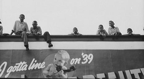 Keywords: CrowleyNegroBoysOnBillboardRussellLee.jpg Negro boys atop billboard National Rice Festival Crowley Louisiana 1938 Photo by Russell Lee for Farm Security Administration/WPA via http //hdl loc gov/loc pnp/fsa 8a24094 1938-10 Creator Russell Lee PD-USGov National Rice Festival 1938 Billboards in Louisiana African American children |