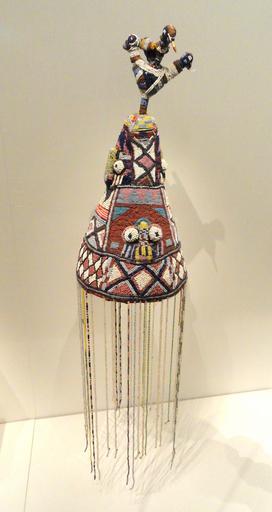 | Keywords: Crown (Ade), 1900s, Guinea Coast, Nigeria, Yoruba people, cloth, glass beads, basketry, cardboard, wood, feather quills - Cleveland Museum of Art - DSC08735.JPG en Exhibit in the Cleveland Museum of Art Cleveland Ohio USA Photography was permitted in the museum without restriction This artwork is old enough so that it is in the public domain Daderot 2012-09-07 14 43 54 Daderot cc0 cc0 African art in the Cleveland Museum of Art Yoruba objects decorated with beads and cowrie shells | ||||