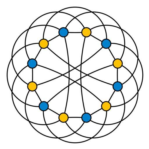 Keywords: Crown graph 12.svg crown graph In this bipartite graph each vertex is adjacent to five out of the six vertices of the opposite color It is the intersection graph of the lines of the Schläfli double six configuration 2013-07-28 11 27 21 own David Eppstein cc-zero Uploaded with UploadWizard Files by User David Eppstein from en 6-fold rotational symmetry Blue and yellow Round Crown graph 6 |