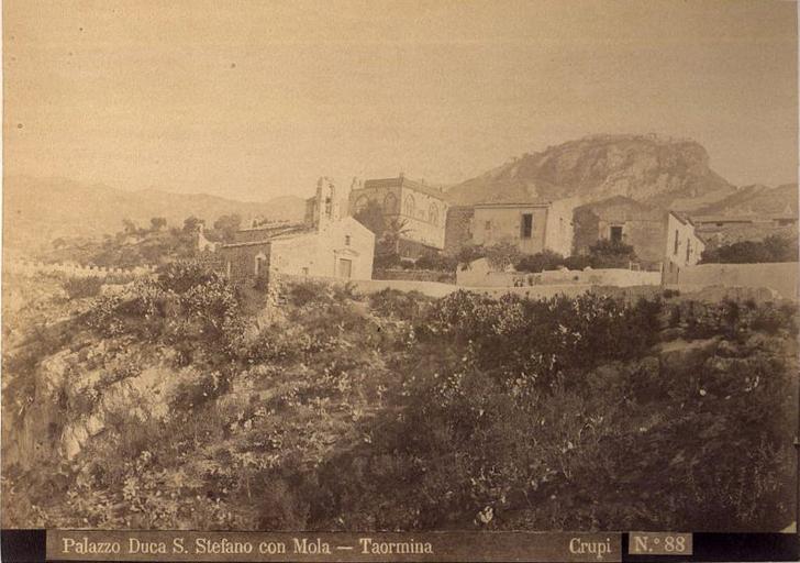 | Keywords: Crupi, Giovanni (1849-1925) - n. 0088 - Palazzo Duca S. Stefano con Mola - Taormina.jpg Giovanni Crupi 1849-1925 Palazzo Duca S Stefano con Mola - Taormina Numero di catalogo 088 Giovanni Crupi 1849-1925 Palace of the Dukes of Santo Stefano with Castelmola - Taormina Catalogue 088 ebay ~ 1900 Creator Giovanni Crupi PD-old-80-1923 <gallery> File Crupi Giovanni 1849-1925 - n 0088 - Palazzo Duca S Stefano con Mola - Taormina jpg File Bruno Giuseppe - Chiesa S Michele e Palazzo S Stefano Castelmola - ca 1885-90 jpg </gallery> Historical images of Taormina by Giovanni Crupi 0088 Palazzo Duchi di Santo Stefano Taormina - Sculpture garden side 1890s Views of Castelmola from Taormina 1890s San Michele Taormina 1890s |
