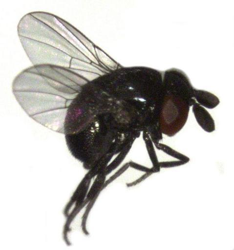 | Keywords: Cryptochetum iceryae.jpg en adult Cryptochetum iceryae own photo taken by me S E Thorpe 2010-03-31 NEW ZEALAND AK Tamaki Campus East -36 88100 174 85311 by pond active in hot afternoon sunshine around a Pittosporum eugenioides tree with Icerya purchasi on it 2 Jan 2011 S E Thorpe Cryptochetum iceryae |