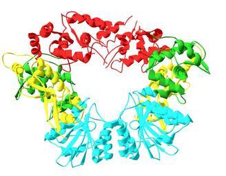 Keywords: Crystal Structure of the FokI endonuclease - PDB-2FOK.png All alpha proteins DNA or RNA-binding 3-helical bundle Winged helix DNA-binding domain Restriction endonuclease FokI N-terminal recognition domain Restriction endonuclease FokI N-terminal recognition domain en Endonuclease FokI dimer derived from Planomicrobium okeanokoites Color was determined individual domain name - red the first domain; D1 green second domain; D2 yellow third domain; D3 - responsible for the connection to DNA Endonuclease<br> - blue - for the domain corresponding to the intersection of DNA Crystallographic data visualization was made by Swiss-made PDBViewer 4 0 1 program of the file PDB 2FOK http //www pdb org/pdb/explore/explore do structureId 2FOK pl Dimer endonukleazy FokI pochodzącej z Planomicrobium okeanokoites Kolorami oznaczono poszczególne domeny - czerwony pierwsza domena; D1 zielony druga domena; D2 żółty trzecia domena; D3 - odpowiadające za przyłączenie endonukleazy do nici DNA<br> - niebieski - domena odpowiadająca za przecięcie nici DNA Wizualizację danych krystalograficznych wykonano programem Swiss-PDBViewer 4 0 1 z pliku PDB 2FOK http //www pdb org/pdb/explore/explore do structureId 2FOK own Marcello002 2009-12-26; 22 40 Restriction endonuclease FokI N-terminal recognition domain |