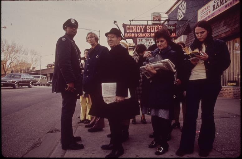 Keywords: CTA BUSMAN WAITS WITH COMMUTERS FOR BUS AT THE SHERIDAN ROAD STOP - NARA - 547205.jpg Scope and content General notes 547205 Local identifier 412-DA-4718 Environmental Protection Agency 12/02/1970 - NARA-Author Sequeira Paul Photographer 8464471 <br /> Chicago Ill 4201352 41 85 -87 65 <br /> Still Picture Records Section Special Media Archives Services Division NWCS-S National Archives at College Park 8601 Adelphi Road College Park MD 20740-6001 03/1973 Record group Record Group 412 Records of the Environmental Protection Agency 1944 - 2006 Record group ARC 708 DOCUMERICA The Environmental Protection Agency's Program to Photographically Document Subjects of Environmental Concern compiled 1972 - 1977 Series ARC 542493 File unit File unit ARC Variant control numbers Agency-Assigned Identifier 079/38/004718<br /> NAIL Control Number NWDNS-412-DA-4718 Other versions <gallery> File CTA_BUSMAN_WAITS_WITH_COMMUTERS_FOR_BUS_AT_THE_SHERIDAN_ROAD_STOP_-_NARA_-_547205 tif tif File CTA_BUSMAN_WAITS_WITH_COMMUTERS_FOR_BUS_AT_THE_SHERIDAN_ROAD_STOP_-_NARA_-_547205 jpg jpg </gallery> NARA-cooperation PD-USGov Bus stops of the Chicago Transit Authority History of the Chicago Transit Authority Paul Sequeira |