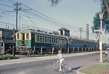 <b>A Roger Puta Photograph</b> CTA Eastbound Lake St. "L" going past the pedrestrain-only frade crossing at Elmwood Ave in Oak Park, IL on August 14, 1962 (25780450541).jpg en Chicago Transit Authority<br> <b>A Roger Puta Photograph</b> 2016-03-17 22 37 51 https //www flickr com/people/129679309 N05 railfan 44 https //www flickr com/photos/129679309 N05/25780450541/ User Fæ/Flickr API Puta's Rail Mass Transit Photographs Transit Chicago Electric Railroad Action Mel Finzer RogerPuta Photographs by Roger Puta Photos uploaded from Flickr by Fæ using a script 1962 in rail transport in the United States |