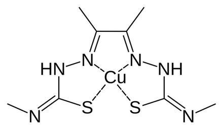 Keywords: Cu-ATSM skeletal.svg Skeletal formula of copper II diacetyl-di N 4 -methylthiosemicarbazone Created using http //www acdlabs com/download/chemsk html ACD/ChemSketch 10 0 and Inkscape Formal charges not displayed Own 2007-07-27 Fvasconcellos 02 56 28 July 2007 UTC Copper complexes Radiopharmaceuticals |
