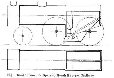 | Keywords: Cudworth coalburning firebox.gif en Vertical and horizontal longitudinal sections of James I'Anson Cudworth's design for locomotive boiler and firebox suitable for burning coal cite book Ahrons E L The British Steam Railway Locomotive 1825 “1925 1987 1927 Bracken Books London 1 85170 103 6 p 133 Original author/artist E L Ahrons d 30 March 1926 Scan by Redrose64 2010-02-03 1927 reprinted 1987 PD-old South Eastern and Chatham Railway steam locomotives Sectioned drawings of steam locomotives Sectioned drawings of steam boilers Steam locomotive boiler fireboxes |