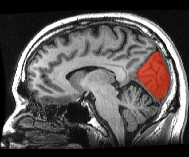 Keywords: Cuneus.png en Sagittal MRI slice with the cuneus and lingual gyrus shown in red own Geoff B Hall 2011-09-08 Cc-zero Magnetic resonance imaging of the brain Cuneus