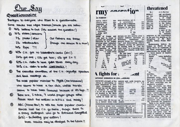 Keywords: cu christian union christianunion newsletter document 1986 akdone sucu text blackandwhite black and white Southampton University Christian Union newsletter from 1986 Southampton University Christian Union newsletter from 1986