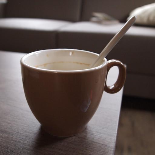 Keywords: cup cup of come nature work spoon table coffee empty lighting