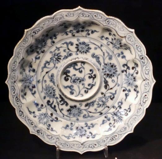 | Keywords: Cup stand, China, Ming dynasty, Hongwu (1368-1398 AD), porcelain with underglaze blue - Östasiatiska museet, Stockholm - DSC09447.JPG en Exhibit in the Östasiatiska museet Stockholm Sweden This artwork is old enough so that it is in the public domain Photography was permitted in the museum without restriction 2014-09-13 06 28 17 own Daderot other versions cc-zero Ceramics of the Ming Dynasty in Östasiatiska museet Uploaded with UploadWizard | ||||