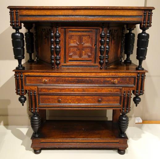 Keywords: Cupboard, possibly by Emery Shop, probably Newbury, Massachusetts, c. 1680, oak with maple, black walnut, sycamore, poplar, view 2 - Winterthur Museum - DSC01473.JPG en Exhibit in the Winterthur Museum New Castle County Delaware USA Photography was permitted in the museum without restriction This work is in the public domain because the artist died more than 70 years ago 2013-05-08 12 20 56 own Daderot cc-zero Uploaded with UploadWizard Sideboards Furniture in Winterthur Museum |