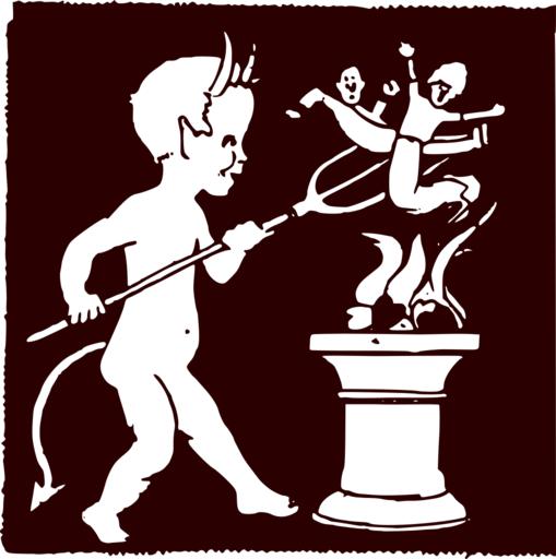 Keywords: cupid devil fire imp people pitchfork trident burn hell