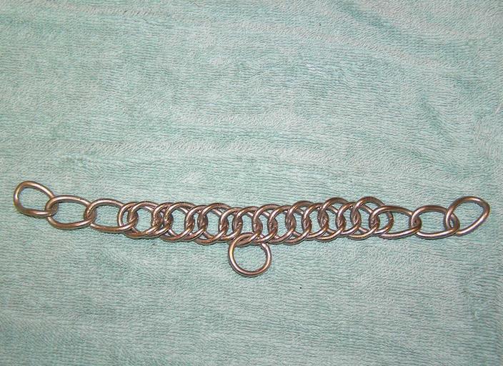 Keywords: CurbChain.jpg en Curb chains are used with curb bits in this case on an English bridle Chain must lay flat against the jaw under USEF rules and those of most other organizations Own Montanabw 2009-01-19 Curb chains