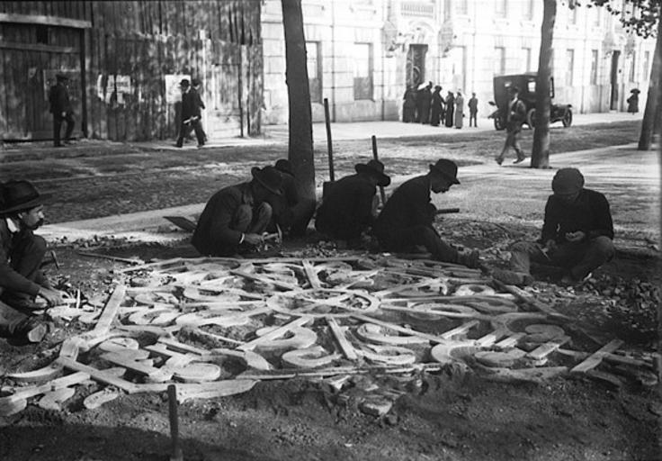 Keywords: Curieux trottoirs de Lisbonne (paveurs).jpg see below Institution George Eastman House http //www geh org/ar/chus/portugal/m197501114538_ful html http //www geh org/ar/strip06/m197501114538 jpg between 1905-10-27 circa 1915 01 š 🛈 Charles Chusseau-Flaviens see below Information_field 1st uploaded as the 24 629 945<sup>th</sup> file in Wikimedia Commons Information_field GEH record <blockquote> Chusseau-Flaviens Ch French active 1890s-1910s 75 0111 4538 </blockquote><small style color C00; > to be completed </small> Lic PD-old Black and white photographs of Portugal Photographs of Portugal by Charles Chusseau-Flaviens Tuvalkin temp /Curieux trottoirs de Lisbonne Photographs in the George Eastman House Collection Portuguese pavement in Lisbon Stages of paving |