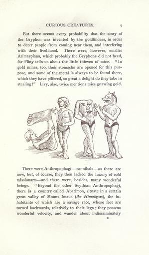 Keywords: Curious creatures in zoology (15382861990).jpg CURIOUS CREATURES 9 <br> But there seems every probability that the story of <br> the Gryphon was invented by the goldfinders in order <br> to deter people from coming near them and interfering <br> with their livelihood There were however smaller <br> Arimaspians which probably the Gryphons did not heed <br> for Pliny tells us about the little thieves of mice In <br> gold mines too their stomachs are opened for this pur- <br> pose and some of the metal is always to be found there <br> which they have pilfered so great a delight do they take in <br> stealing Livy also twice mentions mice gnawing gold <br> There were Anthropophagi cannibals as there are <br> now but of course they then lacked the luxury of cold <br> missionary and there were besides many wonderful <br> beings Beyond the other Scythian Anthropophagi <br> there is a country called Abarimon situate in a certain <br> great valley of Mount Imaus the Himalayas the in- <br> habitants of which are a savage race whose feet are <br> turned backwards relatively to their legs ; they possess <br> wonderful velocity and wander about indiscriminately 23574764 76213 32031 Page 9 Text http //www biodiversitylibrary org/page/23574764 1890 10 5962/bhl title 32031 Ashton John NameFound Imaus NameConfirmed Imaus EOLID 64247 NameBankID 4205187 Biodiversity Heritage Library Curious creatures in zoology; with 130 illus throughout the text Monsters Are Real Animals University of California Libraries archive org bhl page 23574764 dc identifier http //biodiversitylibrary org/page/23574764 bhlMonstersRreal Halloween university of california libraries archive org bhlmonstersrreal Information field Flickr posted date ISOdate 2014-10-19 CC-BY-2 0 BioDivLibrary https //flickr com/photos/61021753 N02/15382861990 2015-08-25 21 52 33 cc-by-2 0 PD-old-70-1923 Curious creatures in zoology Photos uploaded from Flickr by Fæ using a script |