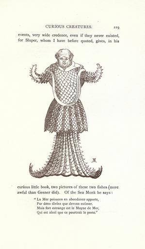 Keywords: Curious creatures in zoology (15381971969).jpg CURIOUS CREATURES <br> 229 <br> events very wide credence even if they never existed <br> for Sluper whom I have before quoted gives in his <br> curious little book two pictures of these two fishes more <br> awful than Gesner did Of the Sea Monk he says <br> La Mer poissons en abondance apporte <br> Par dons divins que devons estimer <br> Mais fort estrange est le Moyne de Mer <br> Qui est ainsi que ce pourtrait le porte 23574984 76213 32031 Page 229 Text http //www biodiversitylibrary org/page/23574984 1890 10 5962/bhl title 32031 Ashton John Biodiversity Heritage Library Curious creatures in zoology; with 130 illus throughout the text Mermaids Monsters Are Real Animals University of California Libraries archive org bhl page 23574984 dc identifier http //biodiversitylibrary org/page/23574984 bhlMonstersRreal Halloween mermaid university of california libraries archive org bhlmonstersrreal Information field Flickr posted date ISOdate 2014-10-19 CC-BY-2 0 BioDivLibrary https //flickr com/photos/61021753 N02/15381971969 2015-08-25 20 54 12 cc-by-2 0 PD-old-70-1923 Curious creatures in zoology Photos uploaded from Flickr by Fæ using a script Sea monk |