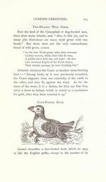 Keywords: Curious creatures in zoology (15382569597).jpg CURIOUS CREATURES 203 <br> TWO-HEADED WILD GEESE <br> Near the land of the Cynocephali or dog-headed men <br> there were many islands and Also in this yle and in <br> many yles thereabout are many wyld geese with two <br> heads But these were not the only extraordinary <br> breed of wild geese extant <br> As the wise Wilde-geese when they over-soar <br> Cicilian mounts within their bills do bear <br> A pebble stone both day and night for fear <br> Lest ravenous Eagles of the North descry <br> Their Armies passage by their Cackling Cry <br> Aristotle mentions the Crane as another stone-bearing <br> bird Among birds as it was previously remarked <br> the Crane migrates from one extremity of the earth to <br> the other and they fly against the wind As for the <br> story of the stone it is a fiction for they say that they <br> carry a stone as ballast which is useful as a touchstone <br> for gold after they have vomited it up <br> FOUR- FOOTED DUCK <br> Gesner describes a four-footed duck which he says <br> is like the English puffin except in the number of its 23574958 76213 32031 Page 203 Text http //www biodiversitylibrary org/page/23574958 1890 10 5962/bhl title 32031 Ashton John Biodiversity Heritage Library Curious creatures in zoology; with 130 illus throughout the text Monsters Are Real Animals University of California Libraries archive org bhl page 23574958 dc identifier http //biodiversitylibrary org/page/23574958 bhlMonstersRreal Halloween university of california libraries archive org bhlmonstersrreal Information field Flickr posted date ISOdate 2014-10-19 CC-BY-2 0 BioDivLibrary https //flickr com/photos/61021753 N02/15382569597 2015-08-25 20 55 14 cc-by-2 0 PD-old-70-1923 Curious creatures in zoology Photos uploaded from Flickr by Fæ using a script |