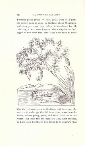 Keywords: Curious creatures in zoology (15382929620).jpg 178 CURIOUS CREATURES <br> Barnacle goose thus Those geese were o'f a perfit <br> red colour such as come to Holland about Weiringen <br> and every yeere are there taken in abundance but till <br> this time it was never knowne where they hatcht their <br> egges so that some men have taken upon them to write <br> that they sit upon trees in Scotland that hang over the <br> water and such eggs that fall from them downe into the <br> water become young geese and swim there out of the <br> water but those that fall upon the land burst asunder <br> and are lost ; but that is now found to be contrary that 23574933 76213 32031 Page 178 Text http //www biodiversitylibrary org/page/23574933 1890 10 5962/bhl title 32031 Ashton John Biodiversity Heritage Library Curious creatures in zoology; with 130 illus throughout the text Monsters Are Real Animals University of California Libraries archive org bhl page 23574933 dc identifier http //biodiversitylibrary org/page/23574933 bhlMonstersRreal Halloween university of california libraries archive org bhlmonstersrreal Information field Flickr posted date ISOdate 2014-10-19 CC-BY-2 0 BioDivLibrary https //flickr com/photos/61021753 N02/15382929620 2015-08-25 21 53 49 cc-by-2 0 PD-old-70-1923 Curious creatures in zoology Photos uploaded from Flickr by Fæ using a script |