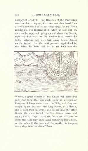 Keywords: Curious creatures in zoology (15568540775).jpg n6 CURIOUS CREATURES <br> unexpected accident For Histories of the Provincials <br> mention that it hapned that one was thus freed from <br> a Pirate that was like to set upon him ; for the Pirate <br> coming on was frighted at it when he saw afar off <br> men as he supposed going up and down the Ropes <br> from the Top Mast as the manner is to defend the <br> Ship Whereas they were but young Bears playing <br> on the Ropes But the most pleasant sight of all is <br> that when the Bears look out of the Ship into the <br> Waters a great number of Sea Calves will come and <br> gaze upon them that you would think an innumerable <br> Company of Hogs swam about the Ship and they are <br> caught by the Sea men with long Spears with Hooks <br> and a Cord tyed to them ; and so are also the other <br> Beasts that come to help the Sea Calves taken and <br> crying like to Hogs Also the Bears are let down to <br> swim that they may catch these wandering Sea-Calves <br> or else when it thunders and the weather is tempes- <br> tuous they be taken above Water 23574871 76213 32031 Page 116 Text http //www biodiversitylibrary org/page/23574871 1890 10 5962/bhl title 32031 Ashton John Biodiversity Heritage Library Curious creatures in zoology; with 130 illus throughout the text Monsters Are Real Animals University of California Libraries archive org bhl page 23574871 dc identifier http //biodiversitylibrary org/page/23574871 bhlMonstersRreal Halloween university of california libraries archive org bhlmonstersrreal Information field Flickr posted date ISOdate 2014-10-19 CC-BY-2 0 BioDivLibrary https //flickr com/photos/61021753 N02/15568540775 2015-08-25 21 56 21 cc-by-2 0 PD-old-70-1923 Curious creatures in zoology Photos uploaded from Flickr by Fæ using a script |