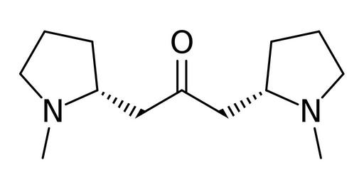 Keywords: Cuscohygrine.svg Chemical structure of cuscohygrine Own 15 12 7 February 2016 UTC Ed Edgar181 Pyrrolidine alkaloids Ketones