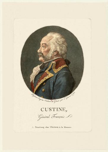 Keywords: Custine Guérin BNF Gallica.jpg Adam Philippe de Custine fr 1742-1793 général français Adam Philippe Comte de Custine 1742-1793 French general 1793 2013-05-13 for upload engraving ARK-BNF http //gallica bnf fr/ark /12148/btv1b69504367/f1 item other fields cleaning of spots dirt dust tears and scratches due to age Correction of levels saturation contrast With GIMP Général Custine engraving 12 17 19 May 2013 UTC Custine Guérin BNF Gallica jpg PD-Art-100 Christophe Guérin Adam Philippe de Custine 1793 engravings Portrait 1793 works in Alsace 18th-century engraved oval portraits of men at bust length Moustaches in art Powdered wigs in art People wearing military uniforms Uploaded with UploadWizard Valued images by Jebulon
