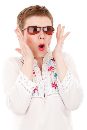 Keywords: cute fashion female girl surprised isolated hand model people person surprise look summer sunglasses vacation white woman young