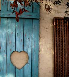 Keywords: cutout shape heart shutter turquoise leaves lattice work brown