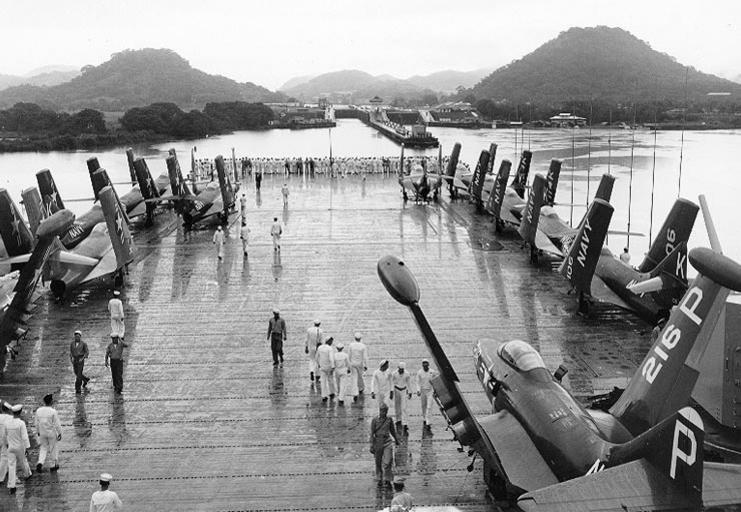 MAKE A MEME View Large Image CVG-3 CVA-40 31Aug1954.jpg The U S Navy aircraft carrier USS Tarawa CVA-40 approaches the Pedro Miguel Locks while transiting the Panama Canal on 31 August 1954 The carrier was en route back to the Atlantic in the final stages of her ...