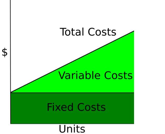 Keywords: CVP-TC-FC-VC.svg Cost-Volume-Profit diagram decomposing Total Costs as Fixed Costs plus Variable Costs Self-made in Inkscape Created with Inkscape 2008-02-03 Nils R Barth Translation possible Accounting Cost and revenue curves