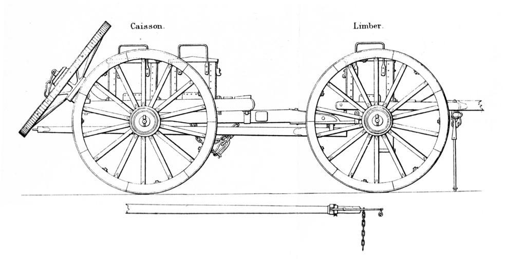 Keywords: CWcaisson.jpg Line engracing of a caisson used in American Civil War The Artillerist Manual 2nd Ed 1863 John Gibbon PD-old Wagons in art Limbers American Civil War artillery