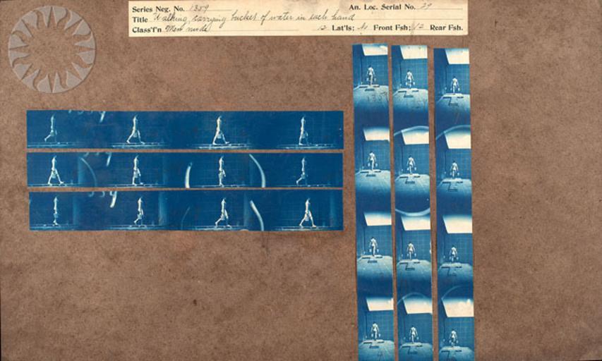 | Keywords: photography physics inventors muybridge smithsonian probably public domain probablypublicdomain SI Neg. 2004-41213. Date: na....Title: "Walking, carrying bucket of water in each hand.".Cyanotype proofs of man walking..Series Neg. No. 1359.An. Loc. Serial No. 29.Classification: Men nude.Muybridge's cyanotypes are working proofs, the contact prints he made from more than 20,000 negatives he took at the University of Pennsylvania between 1884 and 1886 while photographing human and animal subjects in motion from lateral (parallel), front and rear positions. Since the original negatives no longer exist, the cyanotypes provide us with the opportunity to see the pictures Muybridge achieved before he edited and cropped them for publication..From the Photographic History Collection, National Museum of American History...Credit: Eadweard Muybridge (Smithsonian Institution) SI Neg. 2004-41213. Date: na....Title: "Walking, carrying bucket of water in each hand.".Cyanotype proofs of man walking..Series Neg. No. 1359.An. Loc. Serial No. 29.Classification: Men nude.Muybridge's cyanotypes are working proofs, the contact prints he made from more than 20,000 negatives he took at the University of Pennsylvania between 1884 and 1886 while photographing human and animal subjects in motion from lateral (parallel), front and rear positions. Since the original negatives no longer exist, the cyanotypes provide us with the opportunity to see the pictures Muybridge achieved before he edited and cropped them for publication..From the Photographic History Collection, National Museum of American History...Credit: Eadweard Muybridge (Smithsonian Institution) |