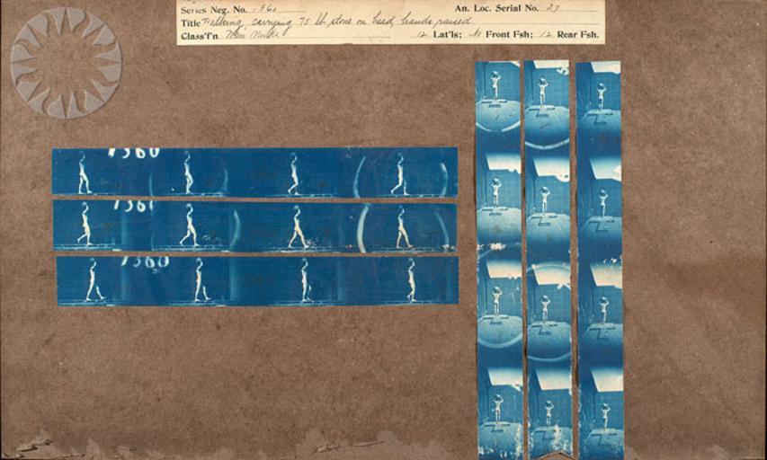 Keywords: photography physics inventors muybridge smithsonian probably public domain probablypublicdomain SI Neg. 2004-41215. Date: na....Title: "Walking, carrying 75 lb. stone on head, hands raised.".Cyanotype proofs of man walking..Series Neg. No. 1360.An. Loc. Serial No. 27.Classification: Men nude.Muybridge's cyanotypes are working proofs, the contact prints he made from more than 20,000 negatives he took at the University of Pennsylvania between 1884 and 1886 while photographing human and animal subjects in motion from lateral (parallel), front and rear positions. Since the original negatives no longer exist, the cyanotypes provide us with the opportunity to see the pictures Muybridge achieved before he edited and cropped them for publication..From the Photographic History Collection, National Museum of American History...Credit: Eadweard Muybridge (Smithsonian Institution) SI Neg. 2004-41215. Date: na....Title: "Walking, carrying 75 lb. stone on head, hands raised.".Cyanotype proofs of man walking..Series Neg. No. 1360.An. Loc. Serial No. 27.Classification: Men nude.Muybridge's cyanotypes are working proofs, the contact prints he made from more than 20,000 negatives he took at the University of Pennsylvania between 1884 and 1886 while photographing human and animal subjects in motion from lateral (parallel), front and rear positions. Since the original negatives no longer exist, the cyanotypes provide us with the opportunity to see the pictures Muybridge achieved before he edited and cropped them for publication..From the Photographic History Collection, National Museum of American History...Credit: Eadweard Muybridge (Smithsonian Institution) |
