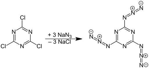 Keywords: Cyanurtriazide Synthesis V.2.svg en Cyanurtriazide_Synthesis de Cyanurtriazid_Synthese own Jü 2012-04-14 Triazines Chemical syntheses Cc-zero