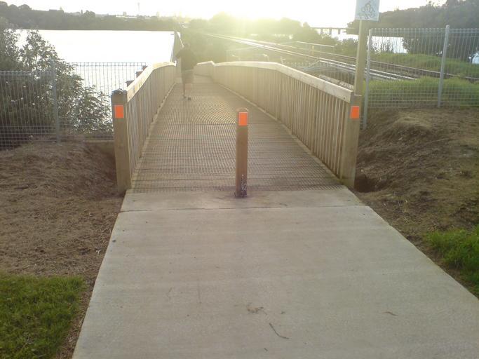 | Keywords: Cycleway Towards West Over Hobson Bay.jpg en The shared path from Meadownbank to Orakei Peninsula in Auckland New Zealand Bit narrow to be a good shared path for both pedestrians and cyclists - supposed to get widened only a few years after this part was built looking west from Meadownbank 2011-06 own Ingolfson other versions cc-zero Uploaded with UploadWizard 2011 in Auckland Orakei Basin Meadowbank New Zealand Boardwalks in New Zealand Bikeways in Auckland Wooden railings Railings in New Zealand Traffic bollards Eastern Line Auckland |