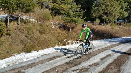 Keywords: cyclist cycling snow landscape winter trees ice mountain landscape sport snowy road snowy landscape cold peaceful serenity