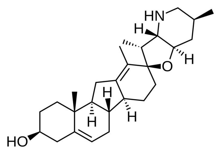 Keywords: Cyclopamine.svg validSVG Skeletal formula of cyclopamine Created using http //www acdlabs com/download/chemsk html ACD/ChemSketch 10 0 http //www inkscape org Inkscape and http //www vim org vim Own Fvasconcellos 2008-07-24 Steroidal alkaloids Teratogens |