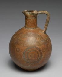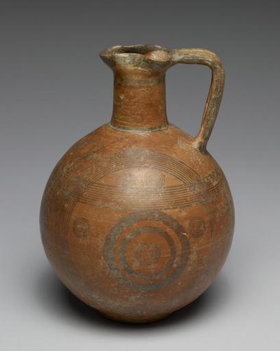 | Keywords: Cypriote - Black-on-Red Ware Jug with Geometric Design - Walters 482341 - Left Side.jpg Small and portable these jugs have been found throughout the lands surrounding Cyprus Called Black-on-Red Ware this attractive ceramic type comprises mostly small jugs The red-brown slip has a polished lustrous surface with simple geometric designs painted in black The decoration of this pottery follows the circle style of the Bichrome Ware jugs century 7 BC terracotta cm 21 accession number 48 2341 2957 William H Smith Alexandria VA Walters Art Museum 1973 by purchase Museum purchase with funds provided by the S A P Fund 1973 place of origin Cyprus Walters Art Museum license Ancient Greek pottery in the Walters Art Museum Ancient Cyprus Media contributed by the Walters Art Museum needs category review Objects on gray background Bichrome Red ware Slipware |