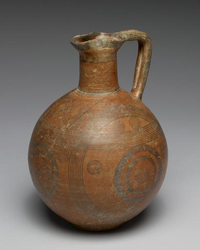 | Keywords: Cypriote - Black-on-Red Ware Jug with Geometric Design - Walters 482341 - Three Quarter Left.jpg Small and portable these jugs have been found throughout the lands surrounding Cyprus Called Black-on-Red Ware this attractive ceramic type comprises mostly small jugs The red-brown slip has a polished lustrous surface with simple geometric designs painted in black The decoration of this pottery follows the circle style of the Bichrome Ware jugs century 7 BC terracotta cm 21 accession number 48 2341 2957 William H Smith Alexandria VA Walters Art Museum 1973 by purchase Museum purchase with funds provided by the S A P Fund 1973 place of origin Cyprus Walters Art Museum license Ancient Greek pottery in the Walters Art Museum Ancient Cyprus Media contributed by the Walters Art Museum needs category review Objects on gray background |