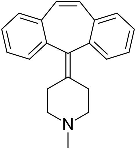 Keywords: Cyproheptadine.svg en 2D structure of antihistamine cyproheptadine Periactin Own Harbin 2009-09-01 Cyproheptadine