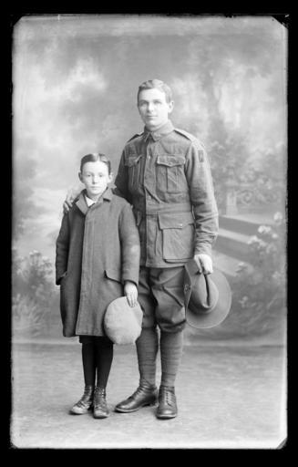 Keywords: proni cooper 'h.f. cooper' hfcooper family 'family portrait' familyportrait genealogy ancestry ulster strabane 'northern ireland' northernireland 'county tyrone' countytyrone lifford 'county donegal' countydonegal blackandwhite groupshot people monochrome photo border outdoor black and white Creator: H.F. Cooper Photographer, Strabane Date: c.1915 Original Format: Glass Plate Negative Description: Standing portrait of a man and a boy c. 8 years. Possibly father and son. The man is wearing military uniform and is holding his hat, the boy is holding his cap. PRONI Ref: D1422~B76378_G_010~A Copying and copyright: Please see www.proni.gov.uk/index/research_and_records_held/copying_... For Copy Orders, contact: Email: proni@dcalni.gov.uk For fees and charges see: www.proni.gov.uk/index/about_proni/are_there_any_fees_and... Creator: H.F. Cooper Photographer, Strabane Date: c.1915 Original Format: Glass Plate Negative Description: Standing portrait of a man and a boy c. 8 years. Possibly father and son. The man is wearing military uniform and is holding his hat, the boy is holding his cap. PRONI Ref: D1422~B76378_G_010~A Copying and copyright: Please see www.proni.gov.uk/index/research_and_records_held/copying_... For Copy Orders, contact: Email: proni@dcalni.gov.uk For fees and charges see: www.proni.gov.uk/index/about_proni/are_there_any_fees_and... |