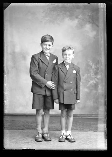 Keywords: blackandwhite groupshot people monochrome photo border black and white Creator: H.F. Cooper Photographer, Strabane Date: c.1935 Original Format: Glass Plate Negative Description: Standing portrait of two boys (c. 10 and 8 years) wearing bow-ties - possibly brothers. PRONI Ref: D1422~B76485_D_014 Copying and copyright: Please see www.proni.gov.uk/index/research_and_records_held/copying_... For Copy Orders, contact: Email: proni@dcalni.gov.uk For fees and charges see: www.proni.gov.uk/index/about_proni/are_there_any_fees_and... Creator: H.F. Cooper Photographer, Strabane Date: c.1935 Original Format: Glass Plate Negative Description: Standing portrait of two boys (c. 10 and 8 years) wearing bow-ties - possibly brothers. PRONI Ref: D1422~B76485_D_014 Copying and copyright: Please see www.proni.gov.uk/index/research_and_records_held/copying_... For Copy Orders, contact: Email: proni@dcalni.gov.uk For fees and charges see: www.proni.gov.uk/index/about_proni/are_there_any_fees_and... |