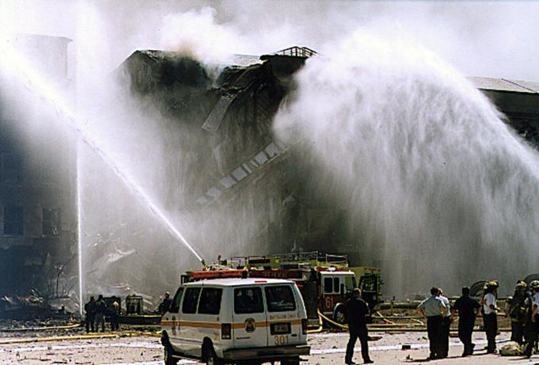 | Keywords: DA-SD-03-08930.JPEG Fire units from the Washington DC area douse smoldering fires on the Pentagons western wall after an American Airlines passenger jet Flight 77 piloted by Al-Qaeda led terrorists flew it into the building http //www dodmedia osd mil/Assets/Still/2003/Army/DA-SD-03-08930 JPEG 2001-09-11 PAUL DISNEY USA PD-USGov PD-USGov The Pentagon on 9/11 September 2001 photographs Ford Econoline 1992 | ||||