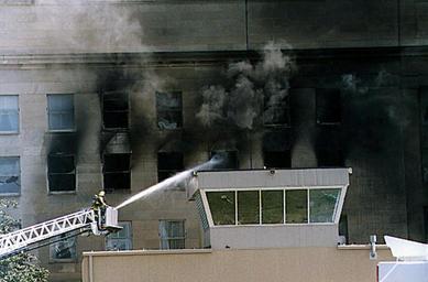 | Keywords: DA-SD-03-08931.JPEG  A local firefighter douses smoke billowing from the windows of the Pentagons western wall after American Airlines Flight 77 piloted by Al-Qaeda led terrorists deliberately crashed into it http //www dodmedia osd mil/Assets/Still/2003/Army/DA-SD-03-08931 JPEG 2001-09-11 PAUL DISNEY USA PD-USGov PD-USGov The Pentagon on 9/11 September 2001 photographs |
